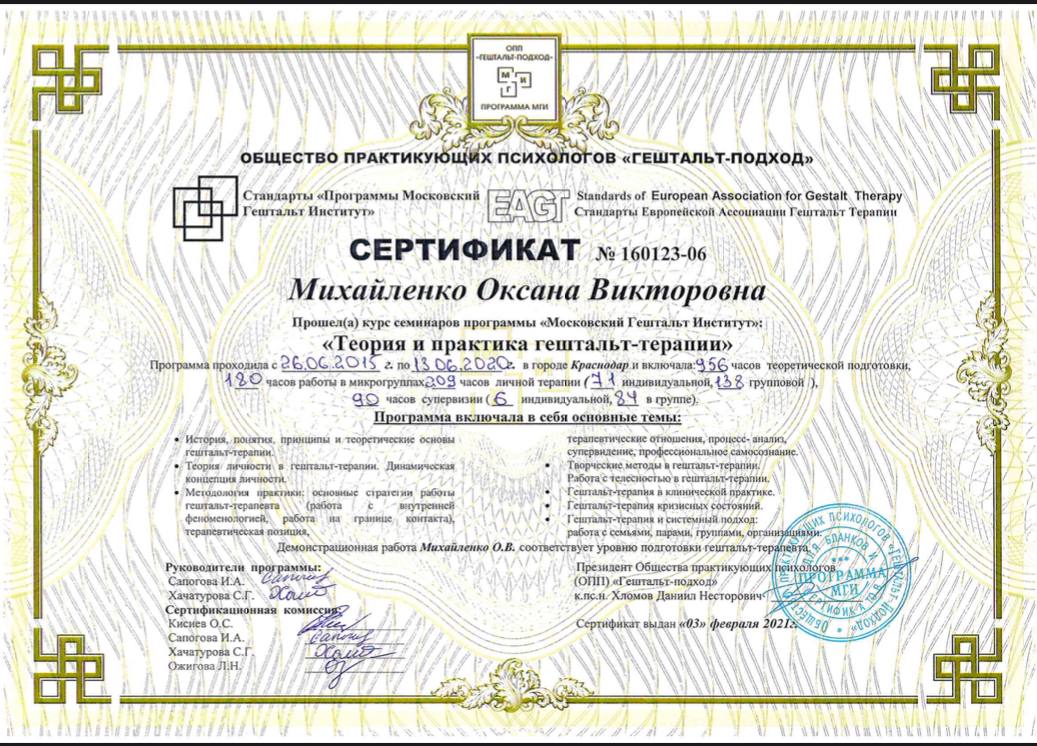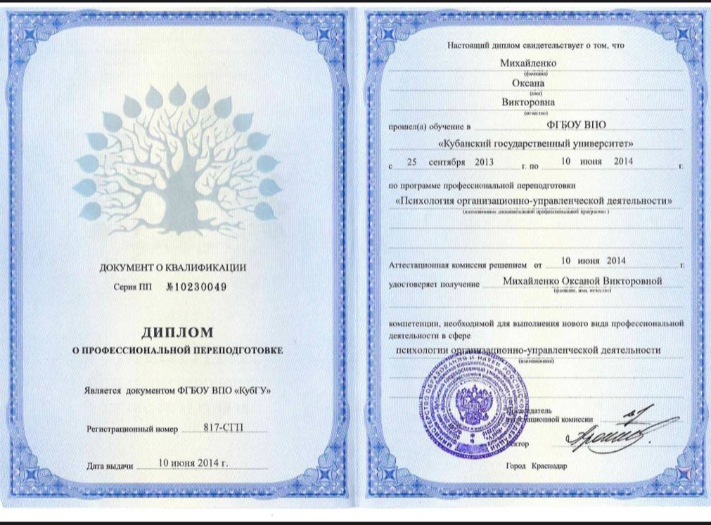 Дипломы и сертификаты психолога